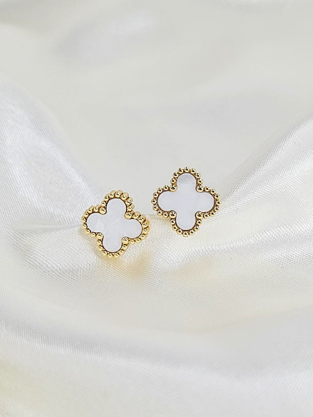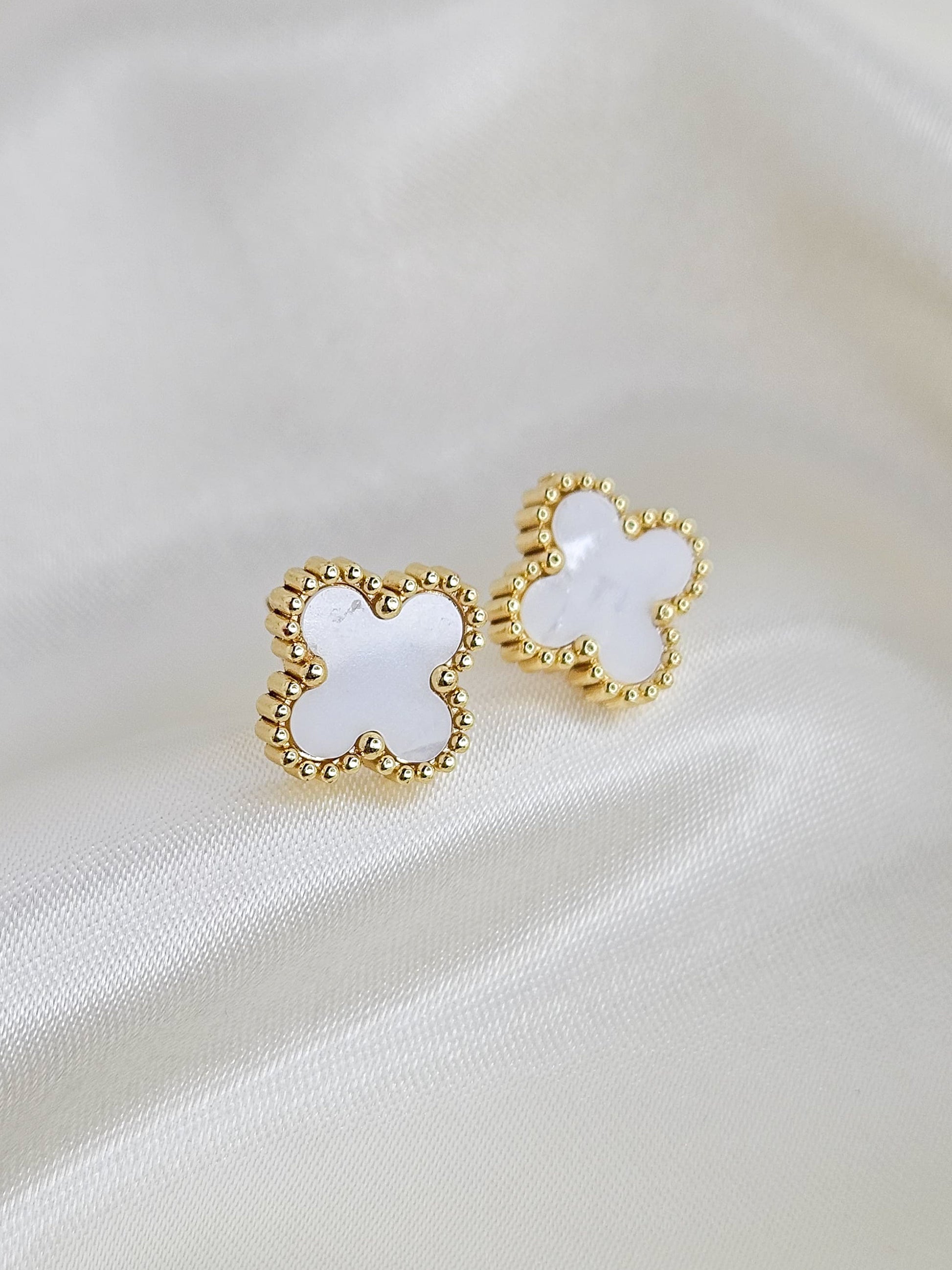 Daily Wear Gold & White Floral Stud Earrings – Anti-Tarnish, Elegant Western Style